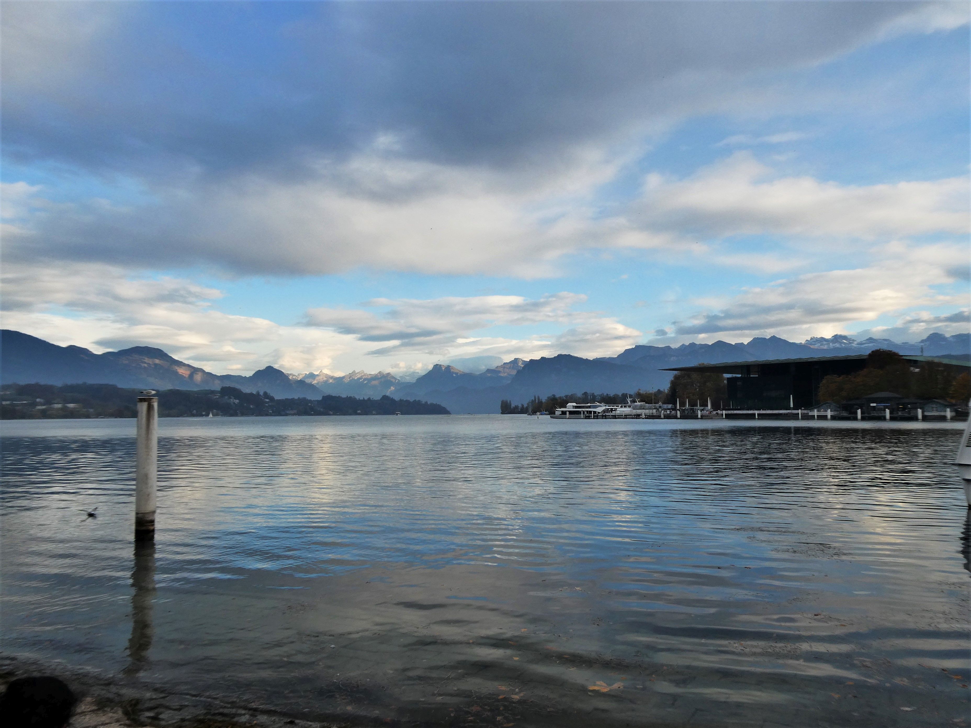 Der Grund unseres Besuchs war ein Konzert im KKL Luzern, welches man am rechten Rand auf dem nächsten Bild erkennen kann. Den Blick in die Ferne genossen wir am Ufer und staunten über die wunderbare Kulisse.