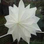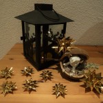 Ich deckte unseren Weihnachtstisch schon am Vorabend. Meine Fröbelsterne glänzten mit den vielen Gläsern und dem Silberbesteck um die Wette. Das I-tüpfchen waren die schönen Menuekarten aus Glitzerpapier.