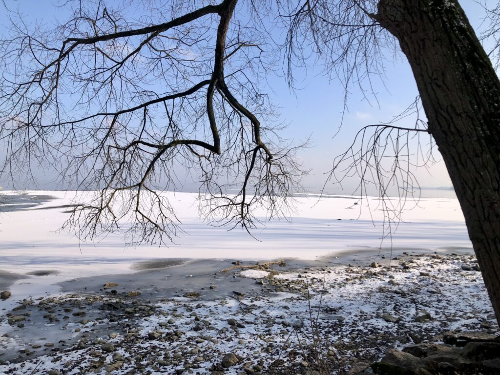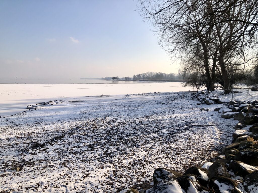 Das Thermometer schafft es an manchen Tagen nicht über die Nullgradgrenze. Am Seeufer bildet sich bereits das erste Eis. Die ganz Mutigen trauen sich sogar schon darauf. Der Pegelstand ist zurzeit recht tief, was die Eisbildung natürlich begünstigt.