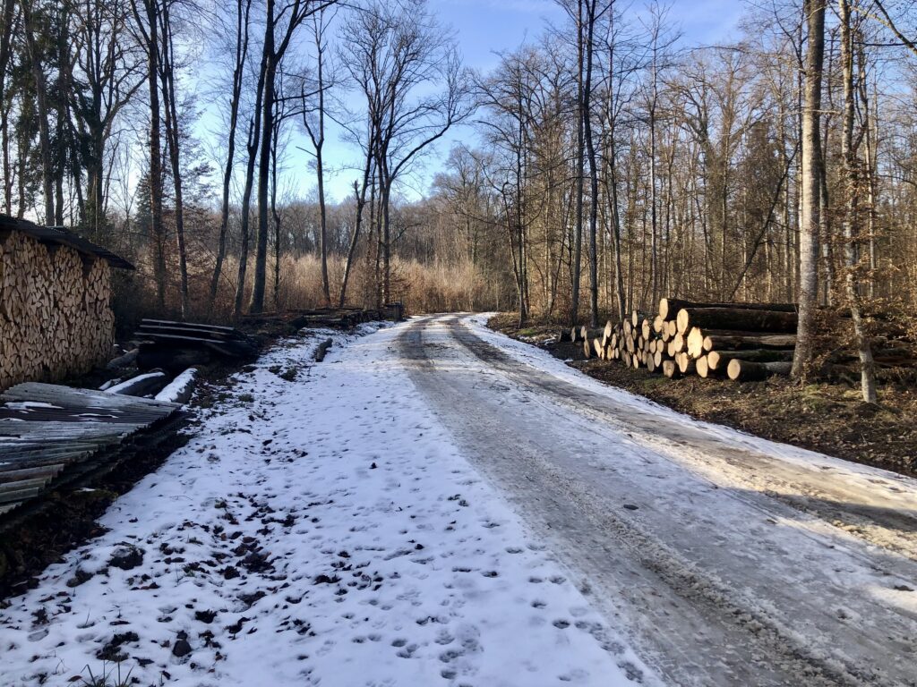 Auch die Waldwege sind immer noch mit Schnee bedeckt und man muss aufpassen beim laufen, weil es durch die Sonneneinstrahlung eisige stellen gibt.