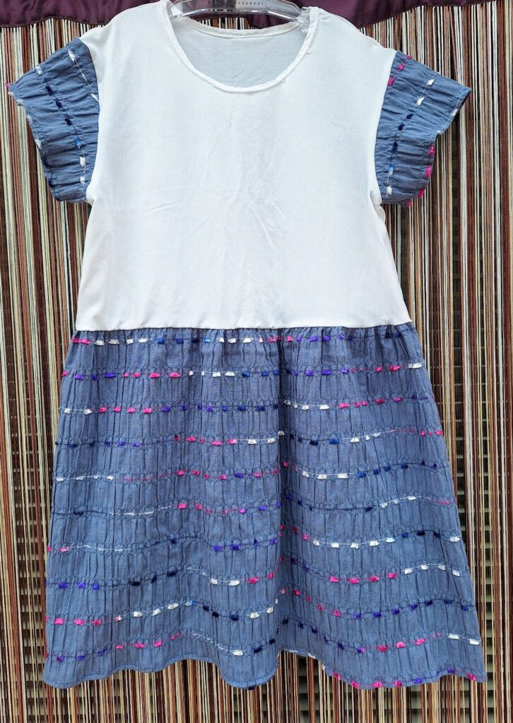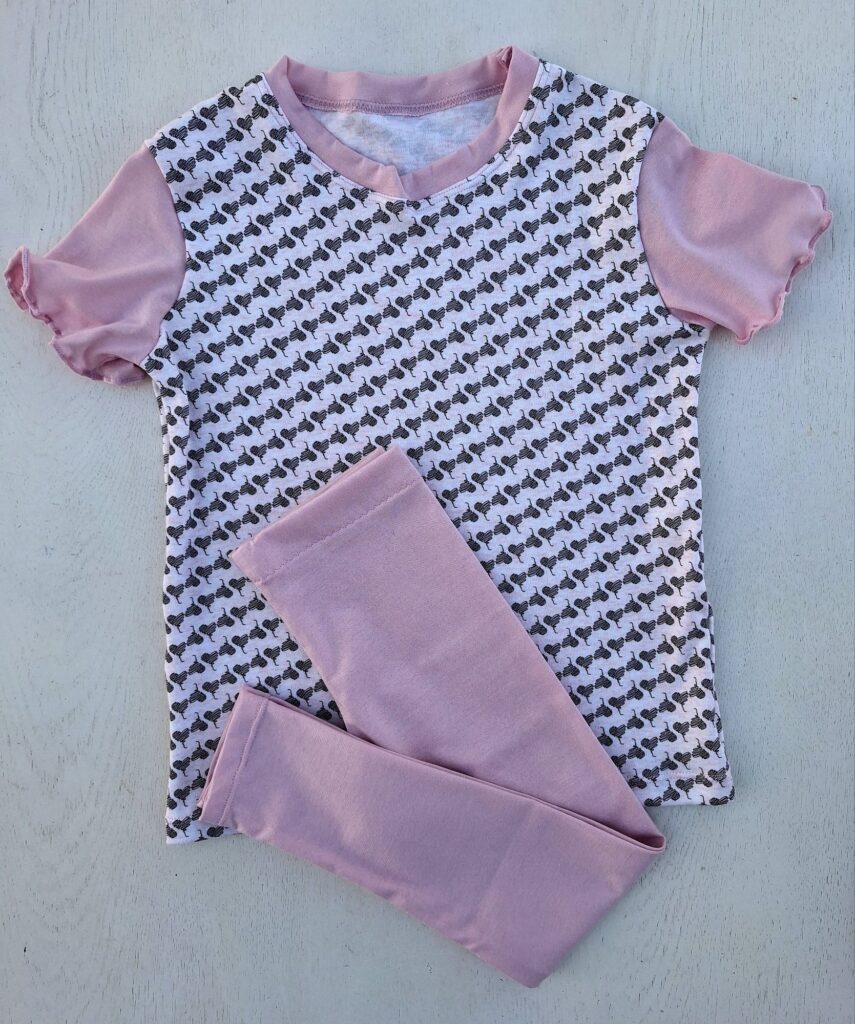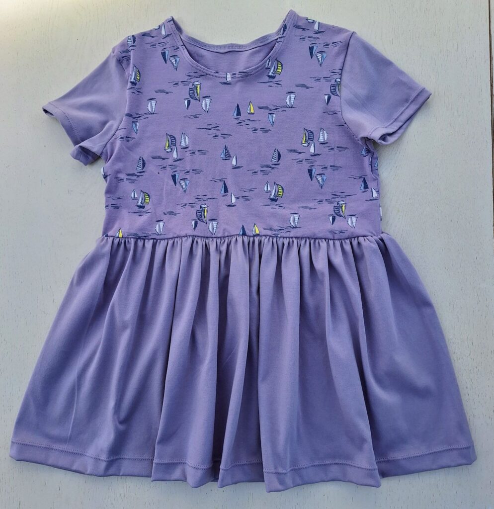 Für beide Enkelinnen habe ich leichte Baumwollhosen genäht – perfekt für warme Tage. Das kleine Kleidchen ist ebenfalls für die grosse Enkelin bestimmt. Und weil der Urlaub vor der Tür steht, habe ich mir selbst – wieder nach dem bewährten Schnittmuster – ein buntes Sommerkleid genäht.