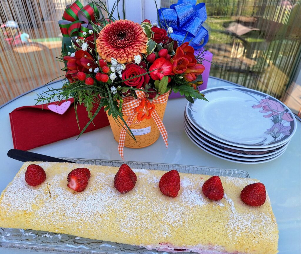 An meinem Hütetag hat die grosse Enkelin – mit nur wenig Unterstützung von mir – ein erfrischendes Dessert aus feinen Thurgauer Erdbeeren für die ganze Familie zubereitet.