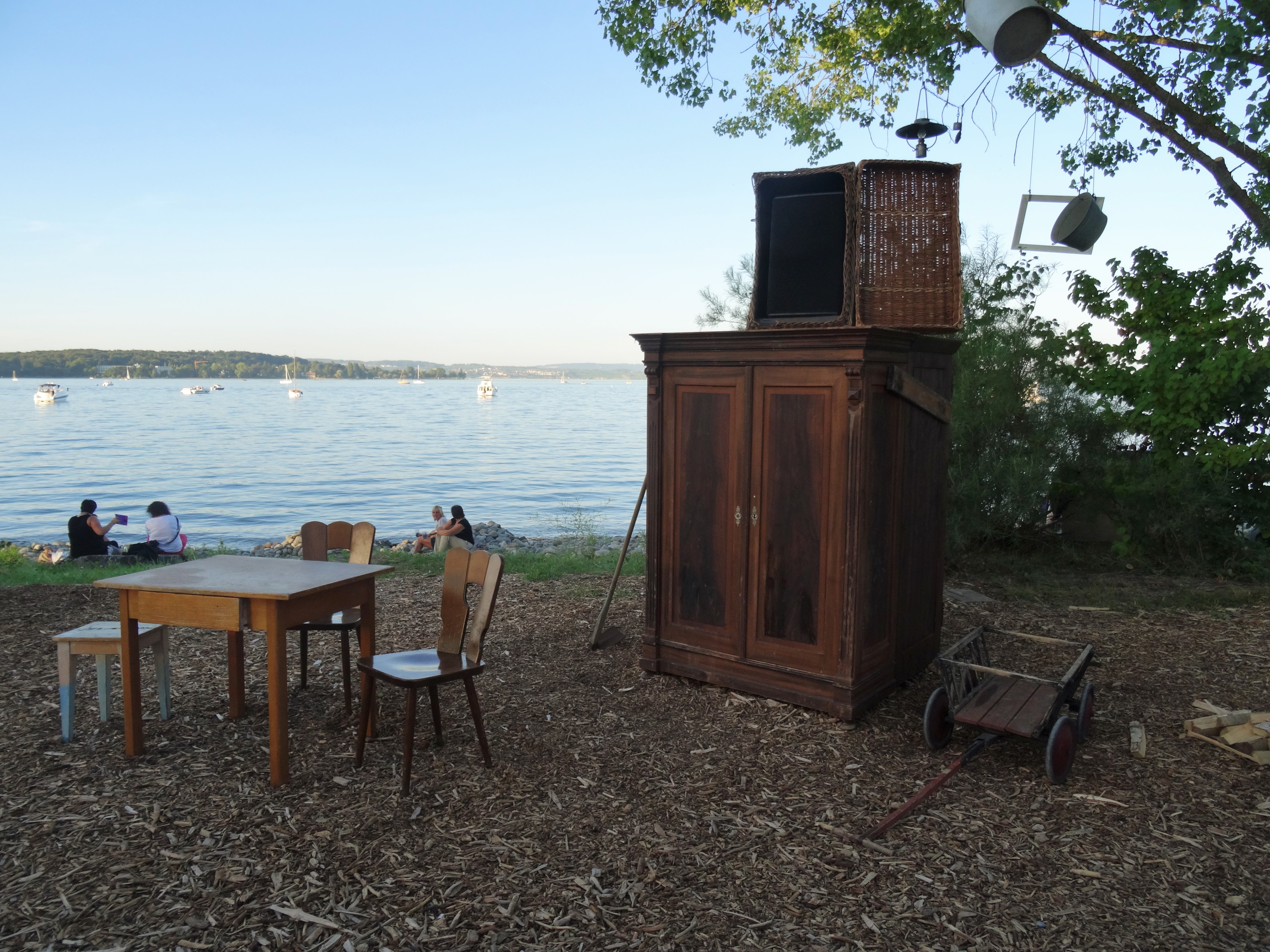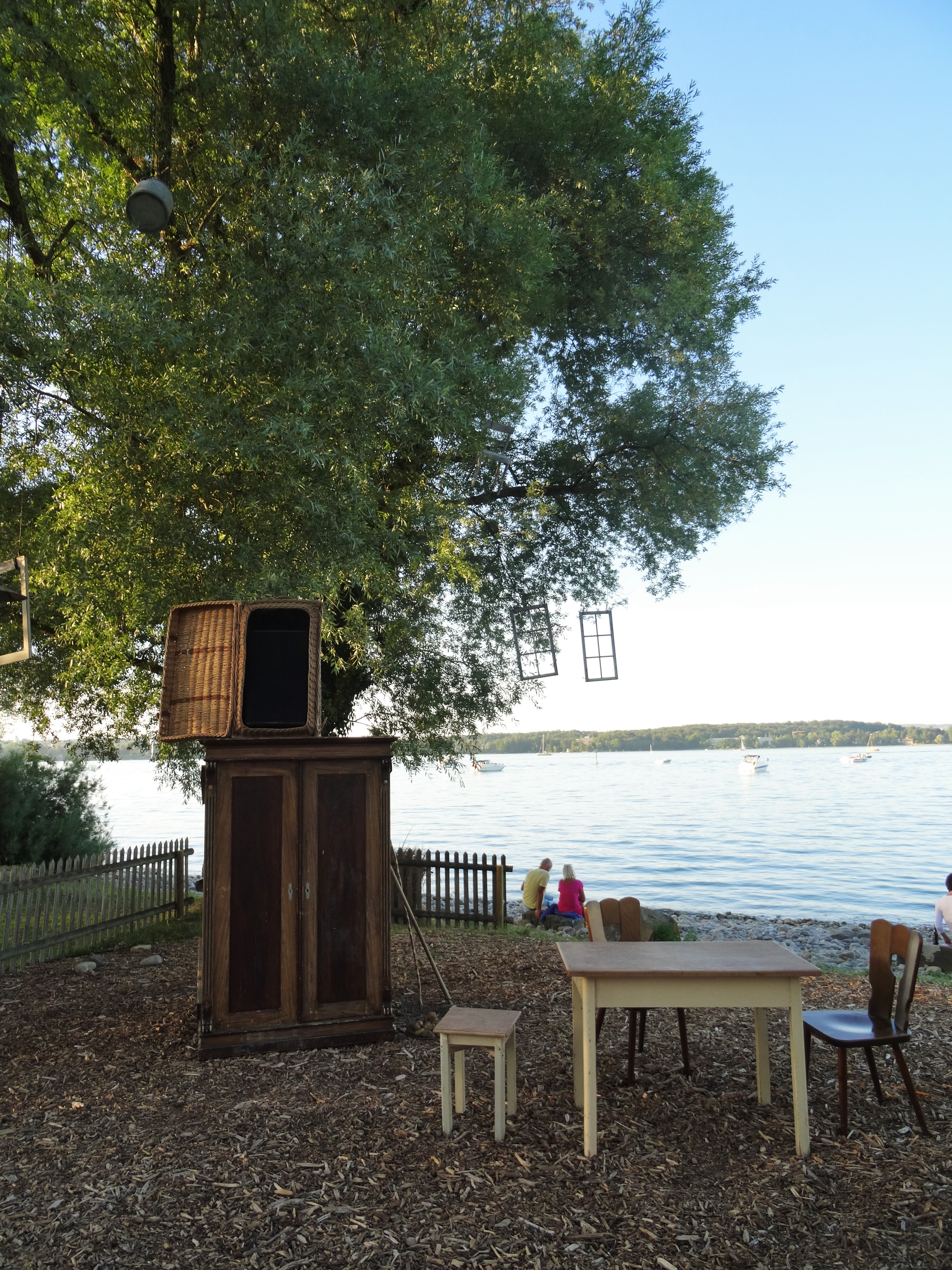 Wie man auf dem nächsten Bild sieht, versperrt das Bühnenbild vom Schiff die ganze Aussicht auf den See und die Berge.