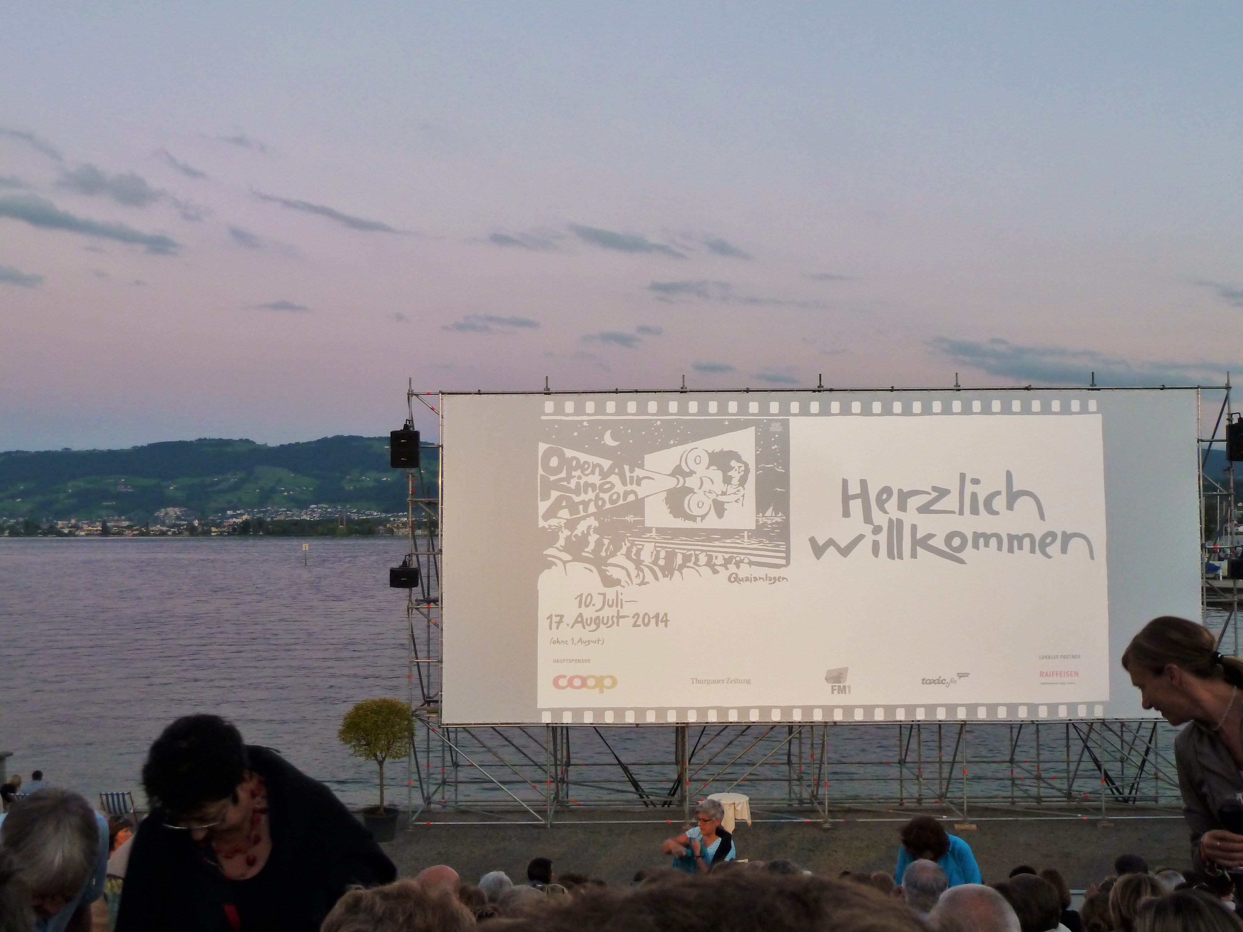 Es war seine 5. Filmvorstellung. Bei der 1. in Zofingen war es nass, beim 2. Mal regnete es, das 3. Mal seichte es und beim 4. Mal schiffte es den ganzen Abend. Heute sei er mit zwei lieben Bekannten gekommen. Sie hätten in Gottlieben gegessen und „Gott liebe“ uns, das sehe er an diesem wunderbaren Abend. Er freue sich, und man habe ihm gesagt, dass der Mond noch komme. Und ja, der Mond kam und vervollständigte das wunderbare Ambiente.