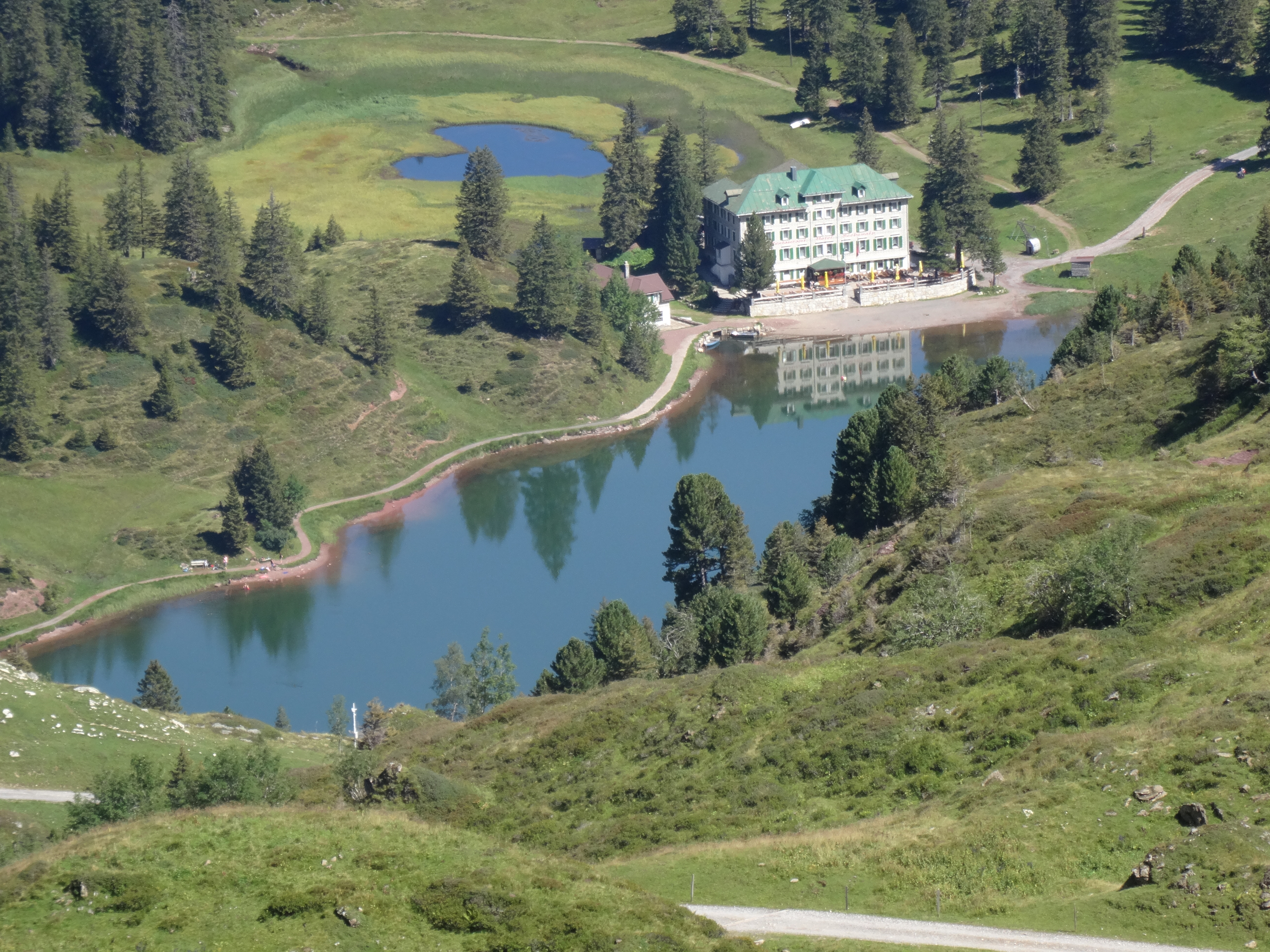 An dem schön spiegelnden Seebenseeli stärkten wir uns auf der Restaurantterrasse.