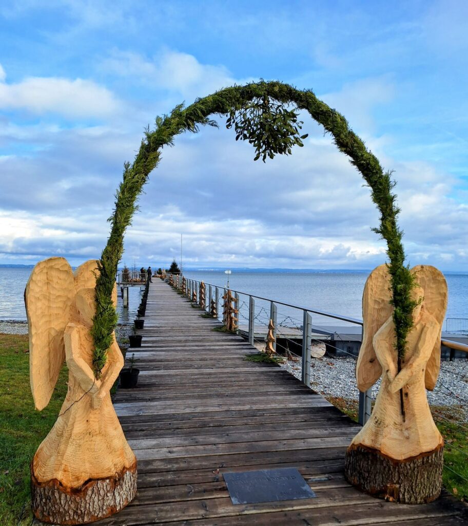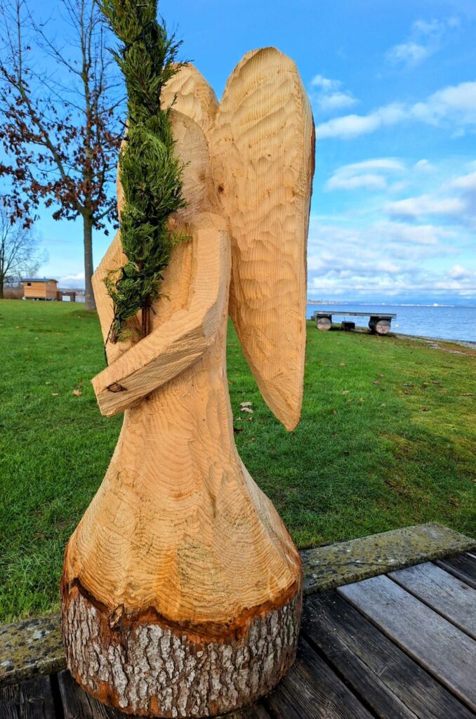 Für die grosse Tochter habe ich einen Kranz mit Zypressen auf gewässertem Steckmoos gemacht. So bleibt das Arrangement bis Weihnachten schön frisch. Mit einer handgemachten Kerze und Dekoration in ihren Lieblingsfarben verströmt es hoffentlich eine warme Atmosphäre bei ihnen zu Hause.