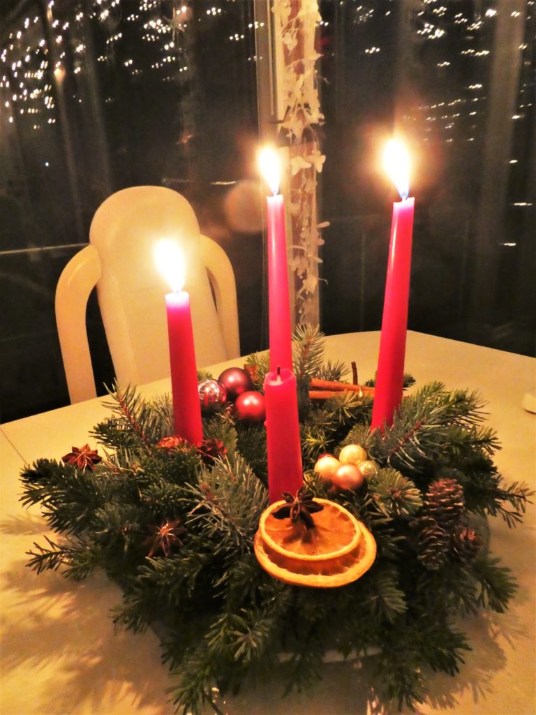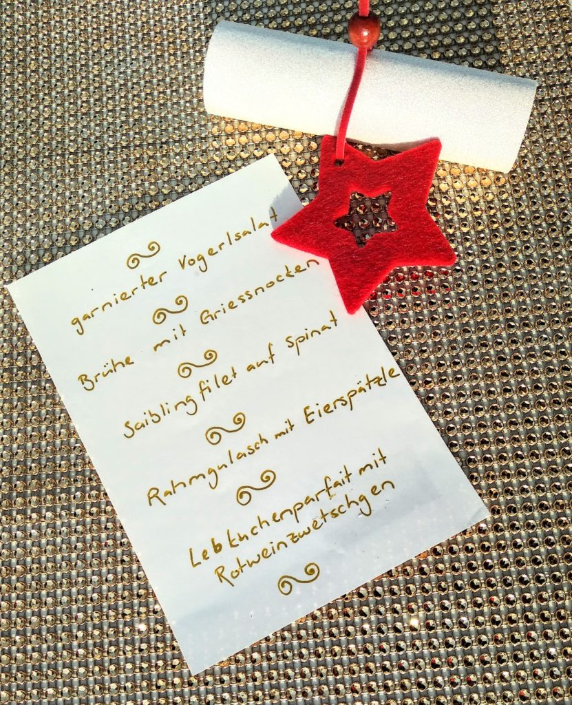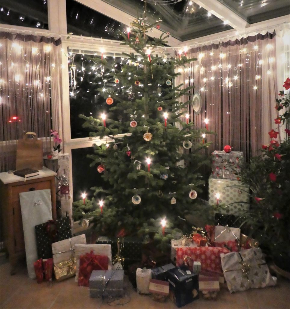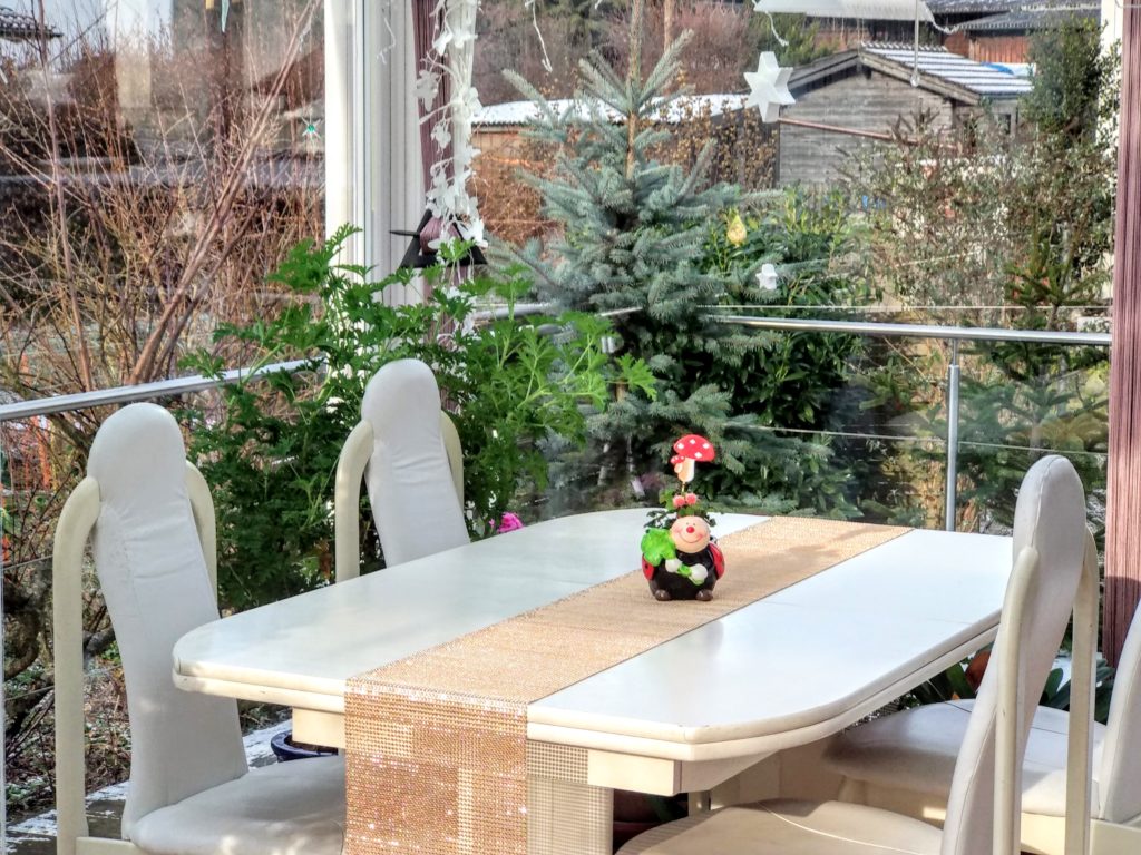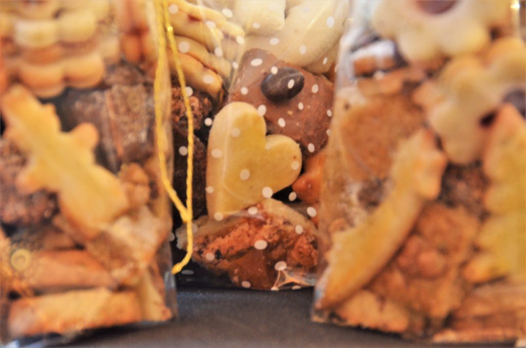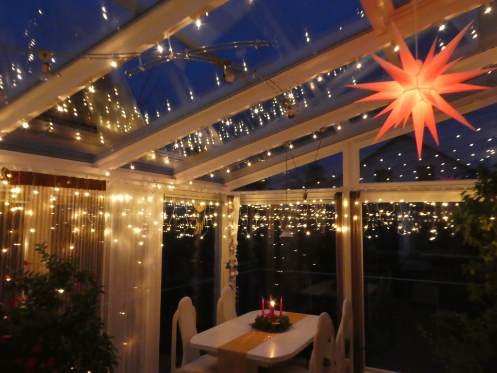 Jetzt kann man auch bei uns sich gemütlich im adventlich geschmückten Wintergarten hinsetzten und die Atmosphäre und unsere Köstlichkeiten geniessen. Auf der Etagere liegen nun alle Sorten. Das ist wichtig, damit wir nächstes Jahr wissen, welche wir wieder backen möchten.