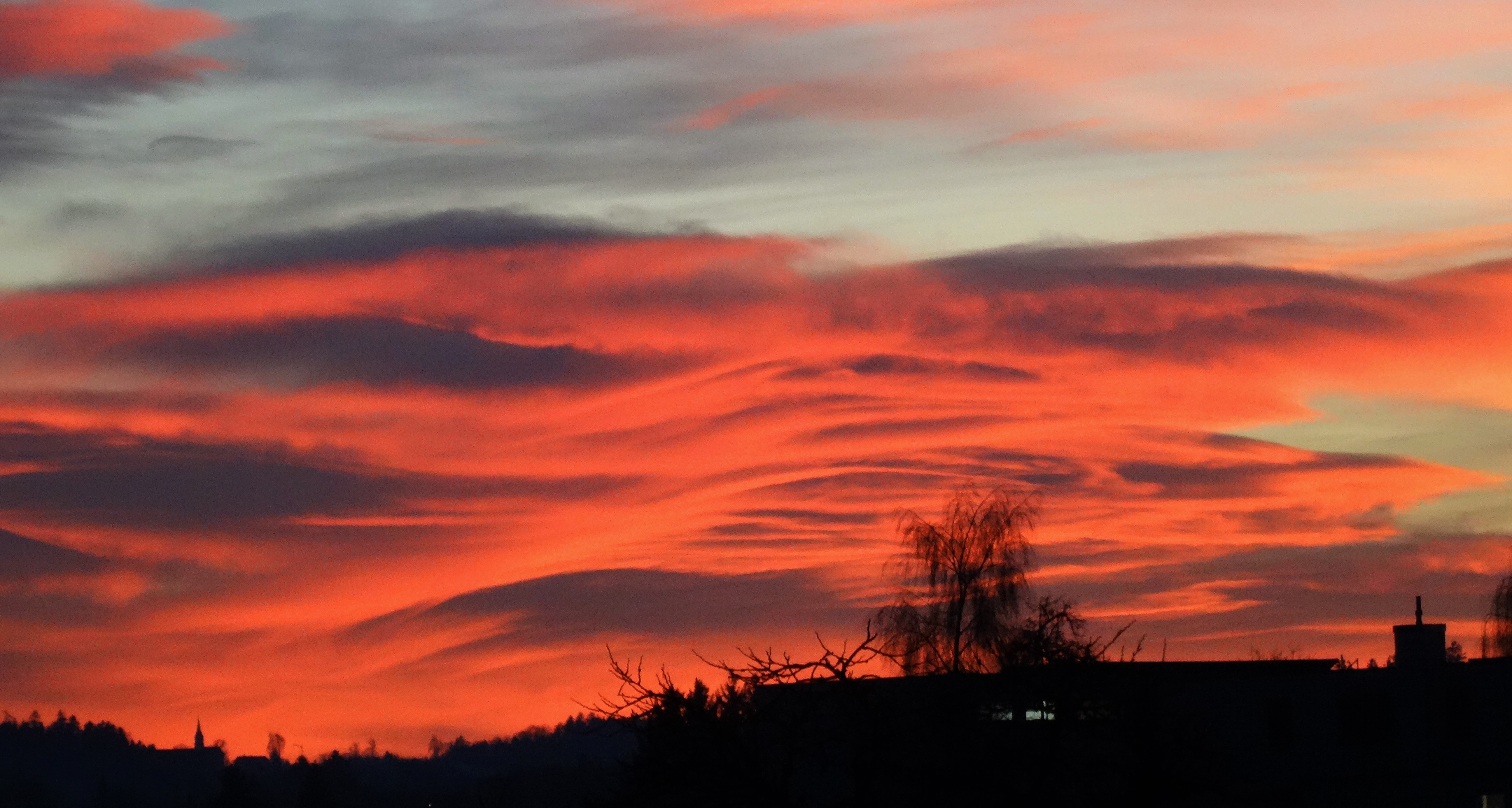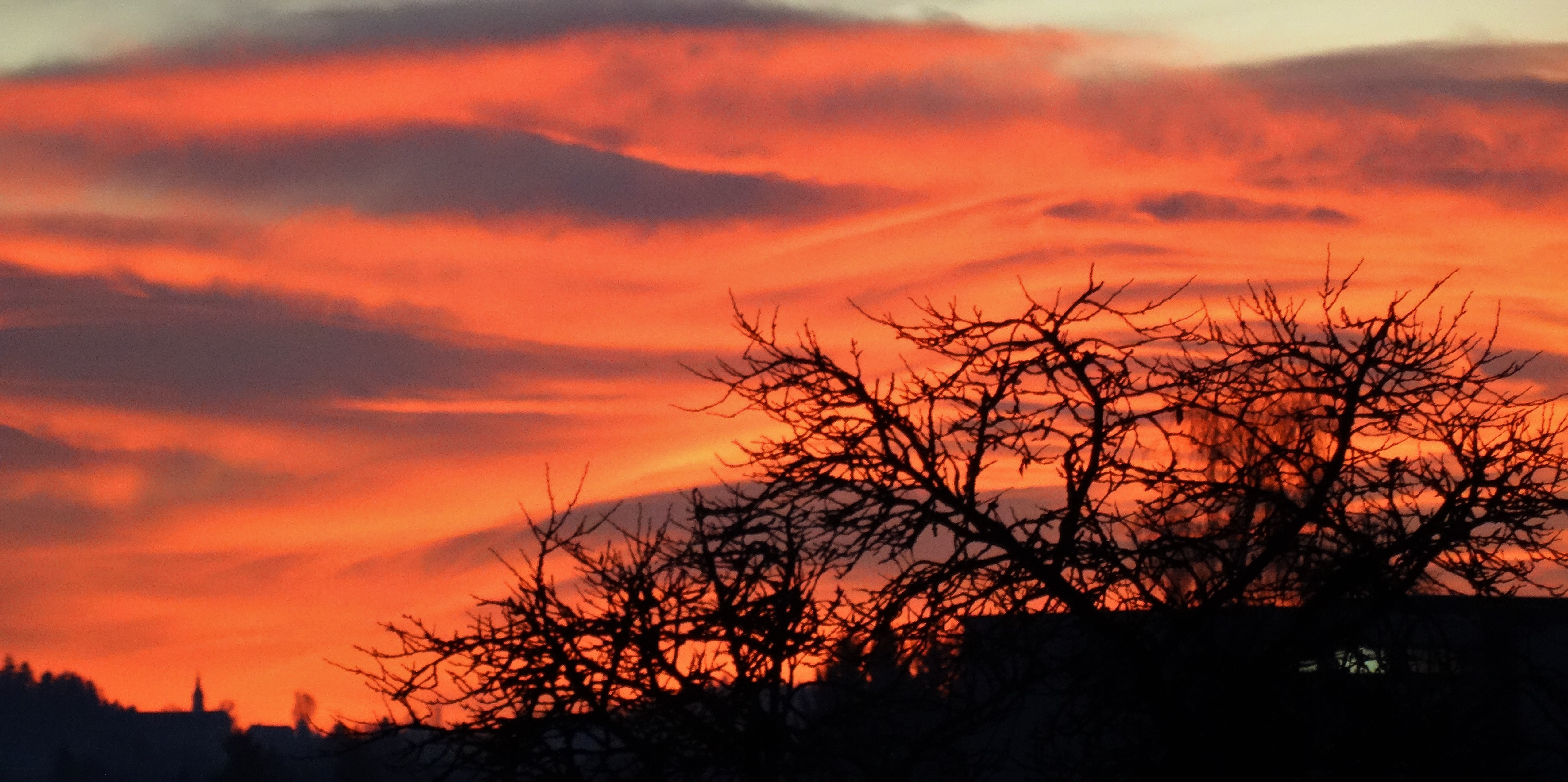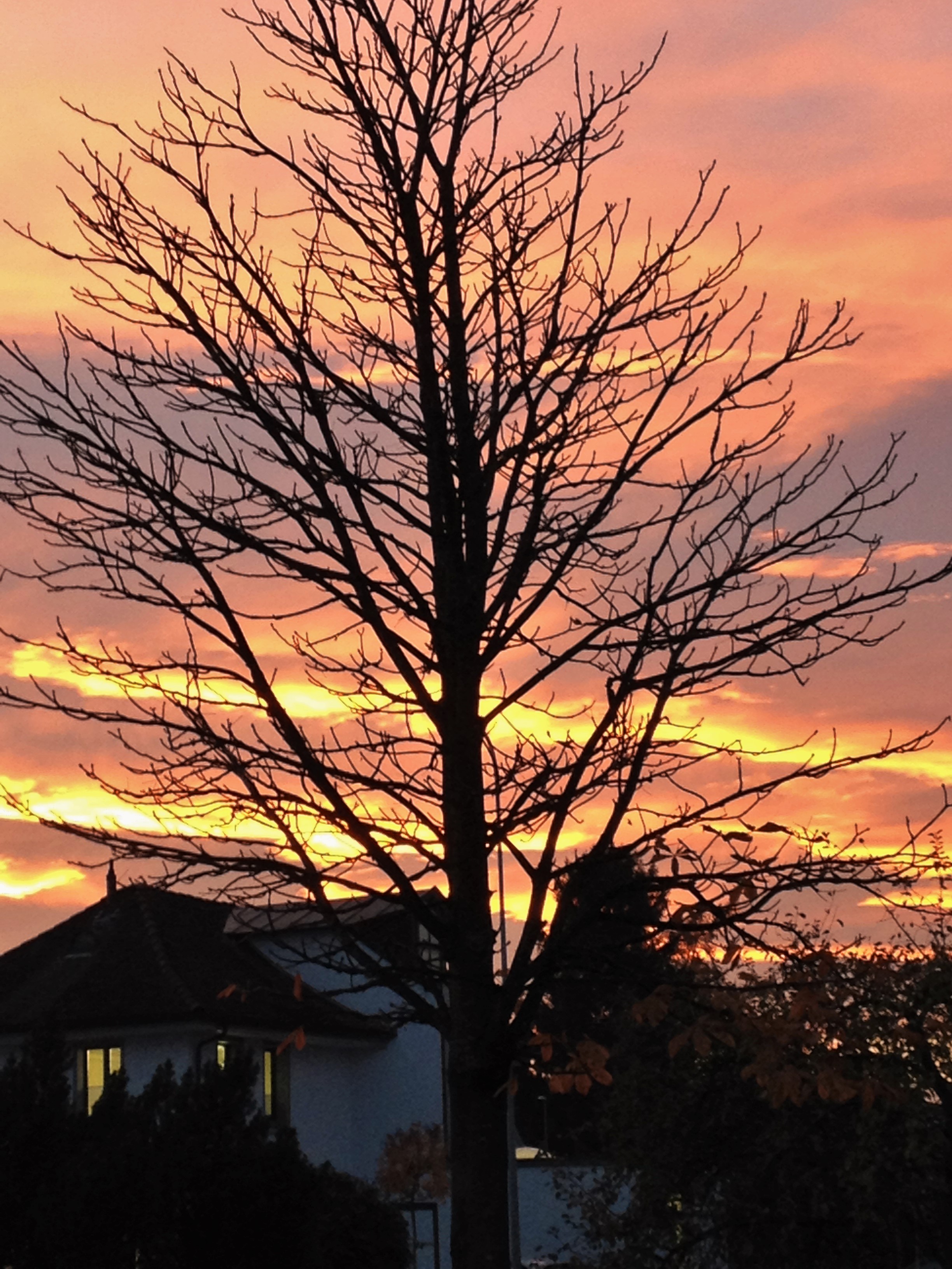 Auf der Fahrt zu unserer Einladung zeigte sich der Himmel in Feststimmung, mit einem goldenen Sonnenuntergang am Horizont.