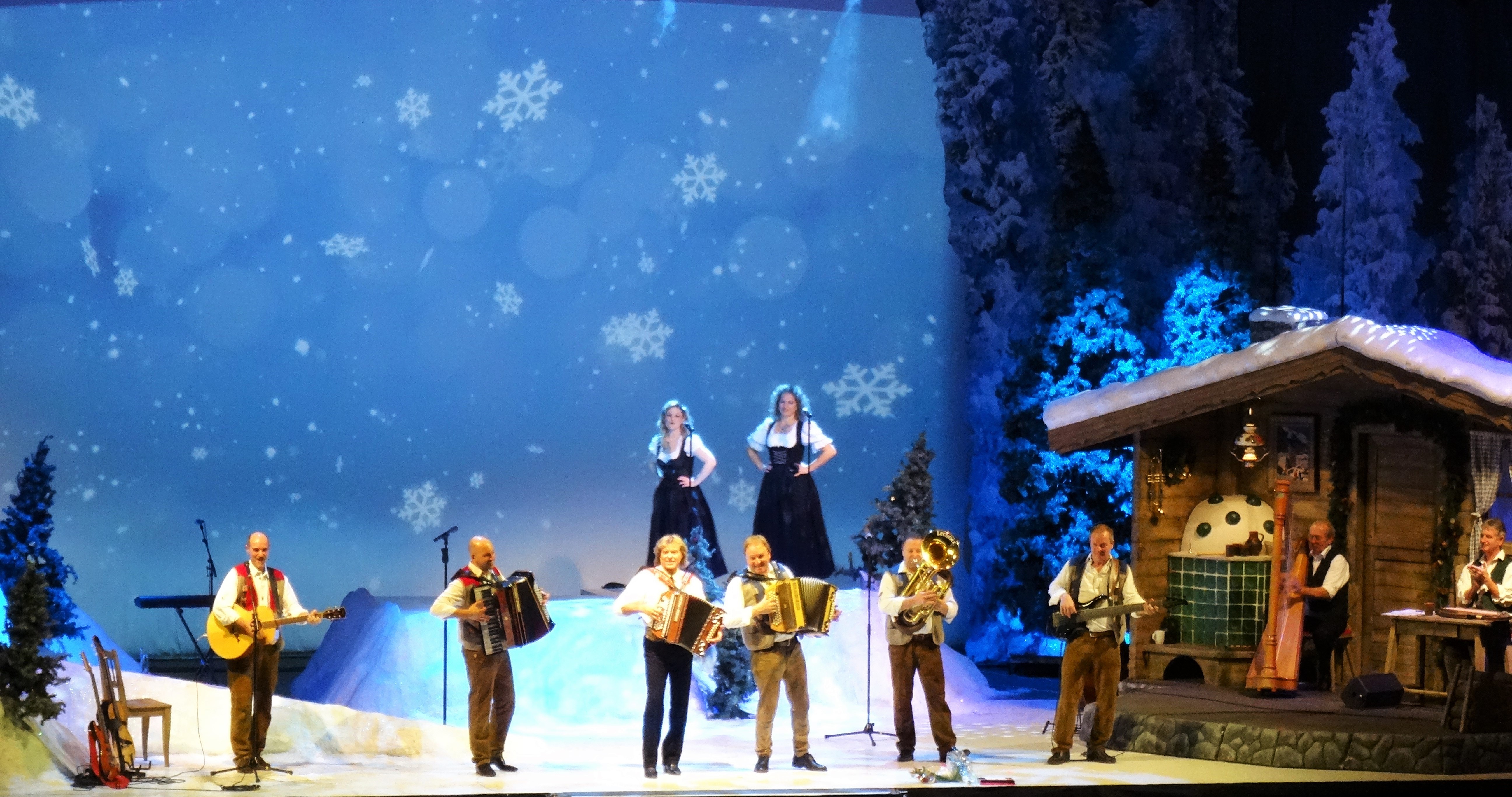 Wir hatten gute Plätze und freie Sicht auf die Bühne. Wir genossen die wechselnden Hintergrundkulissen und die vorweihnachtliche Stimmung.