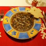 Consumé mit Pilz und Zwiebelwürfel