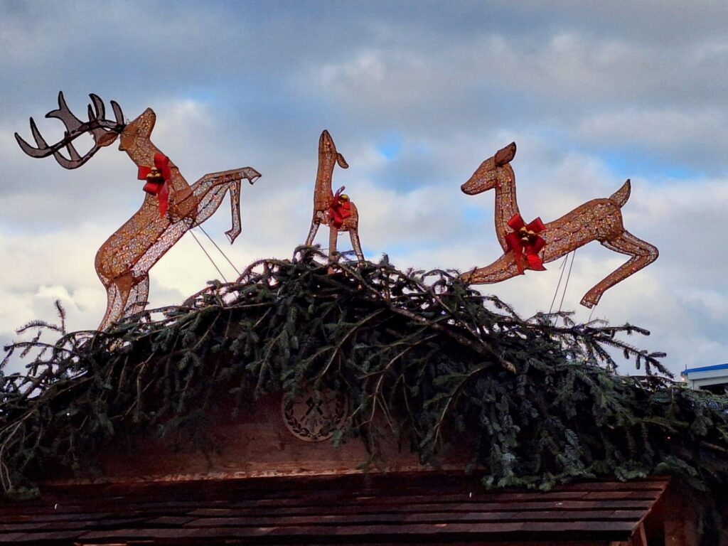 Den Ausflug zu den Eisskulpturen machten wir an einem der wenigen schönen Tage. Leider hatte das Tauwetter den Kunstwerken schon stark zugesetzt.
