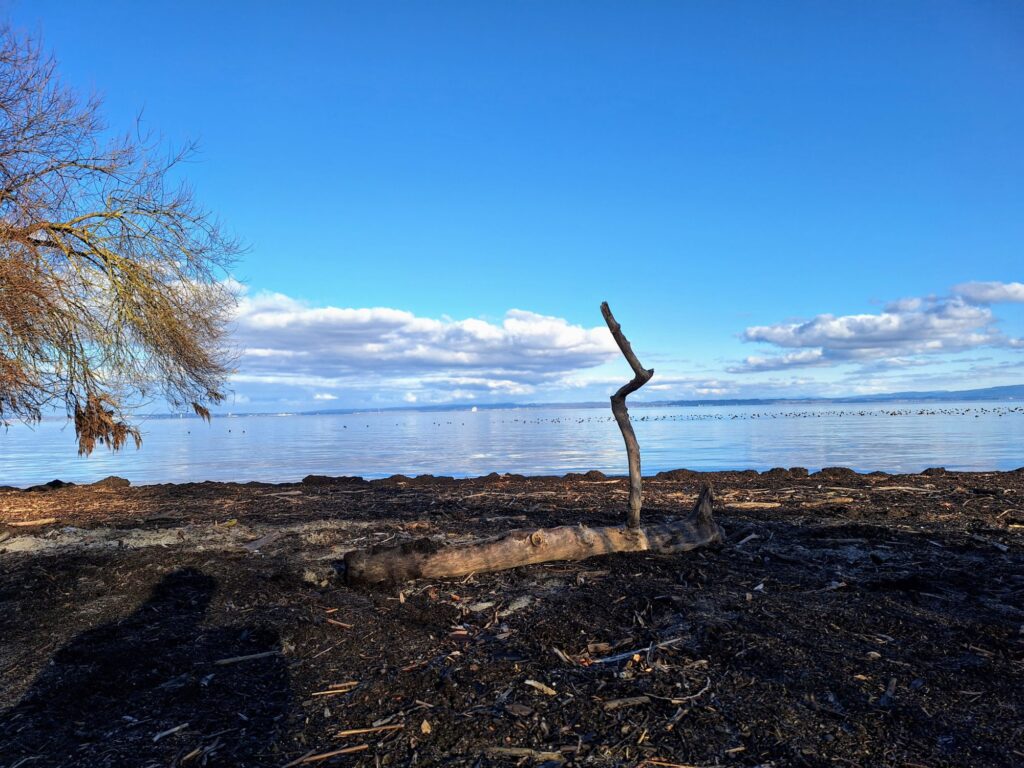 Bei uns am See mussten wir an vielen Tagen auf die Sonne verzichten. Niederschlag gab es kaum, abgesehen von den wenigen Schneeflocken Anfang Jahr, als wir kurz ein kleines Wintermärchen erleben durften. Die Tierspuren auf unserer Terrasse konnten wir allerdings nicht zuordnen. Zum Schlittschuhlaufen hat es leider weder mit der Eisbildung am See noch auf dem Weiher gereicht.