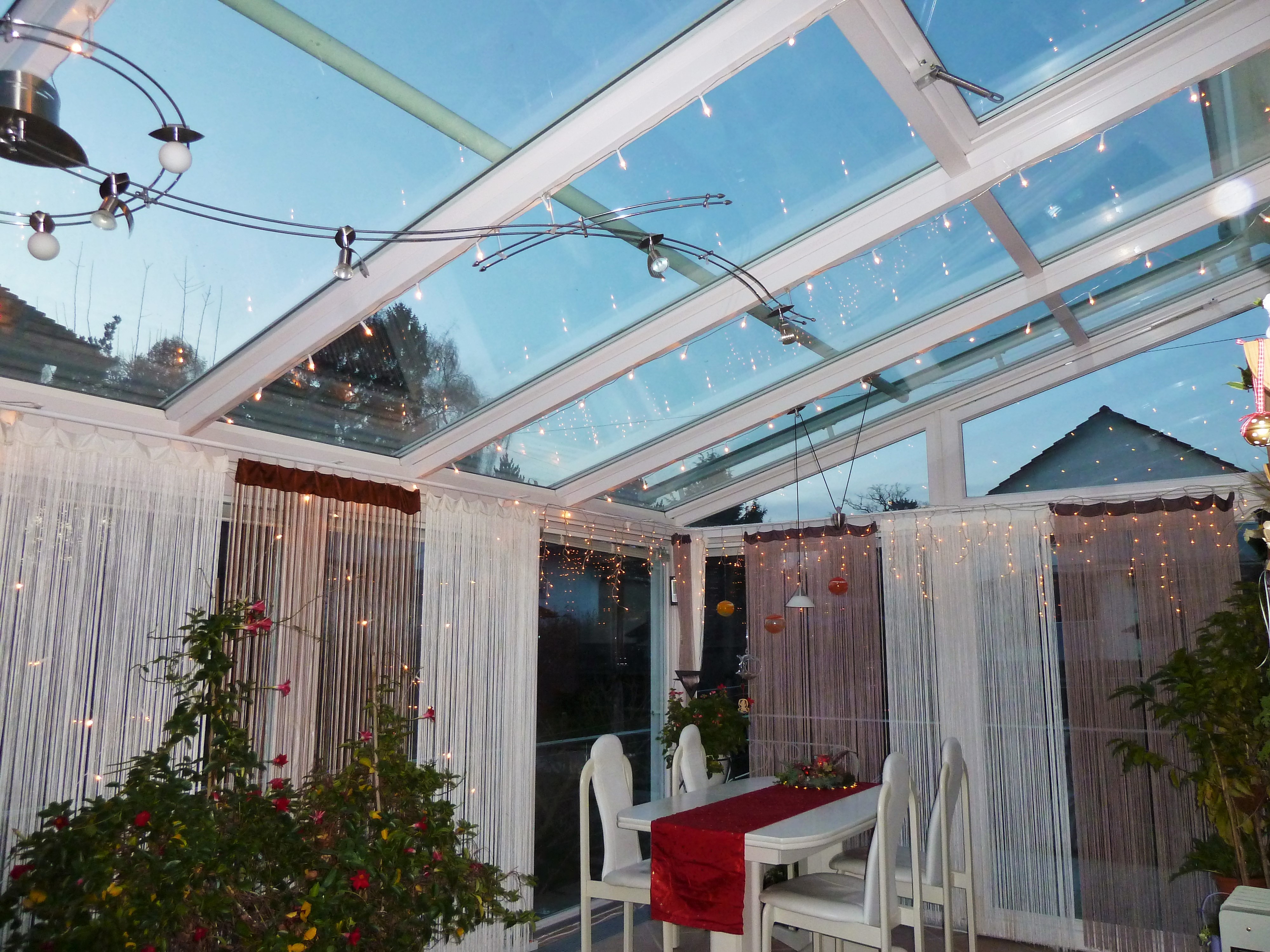 Im Wintergarten hat der Stern an der Wand einen Durchmesser von 40 cm und glänzt mit der Sonne (wenn sie scheint) um die Wette.